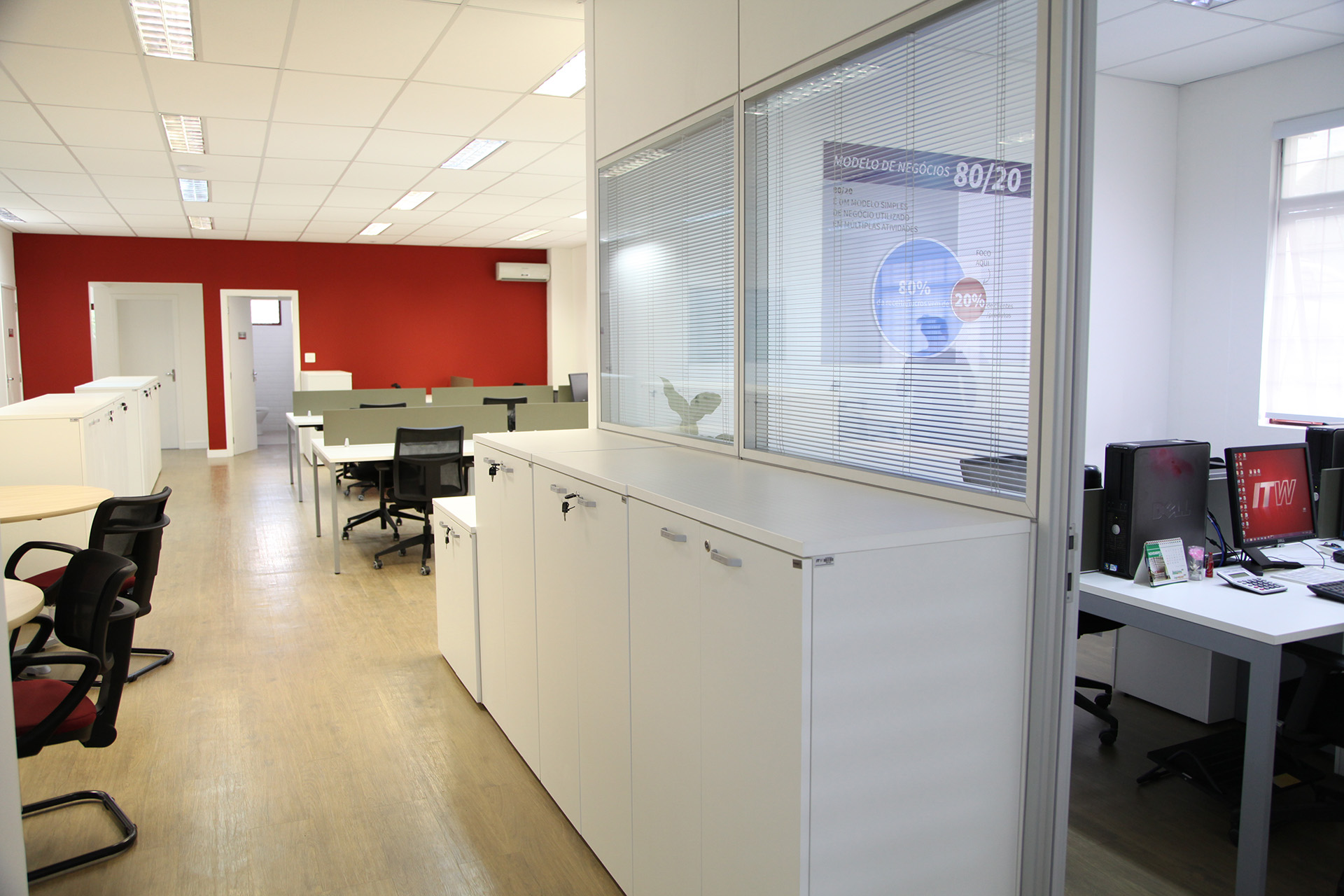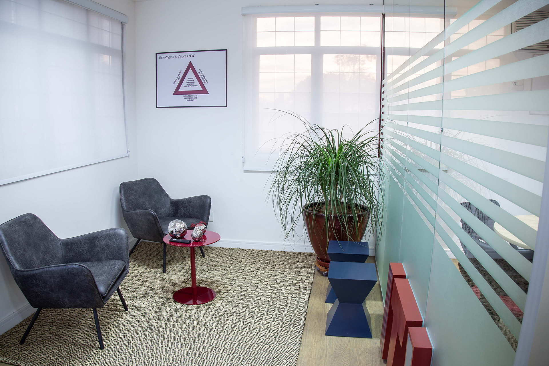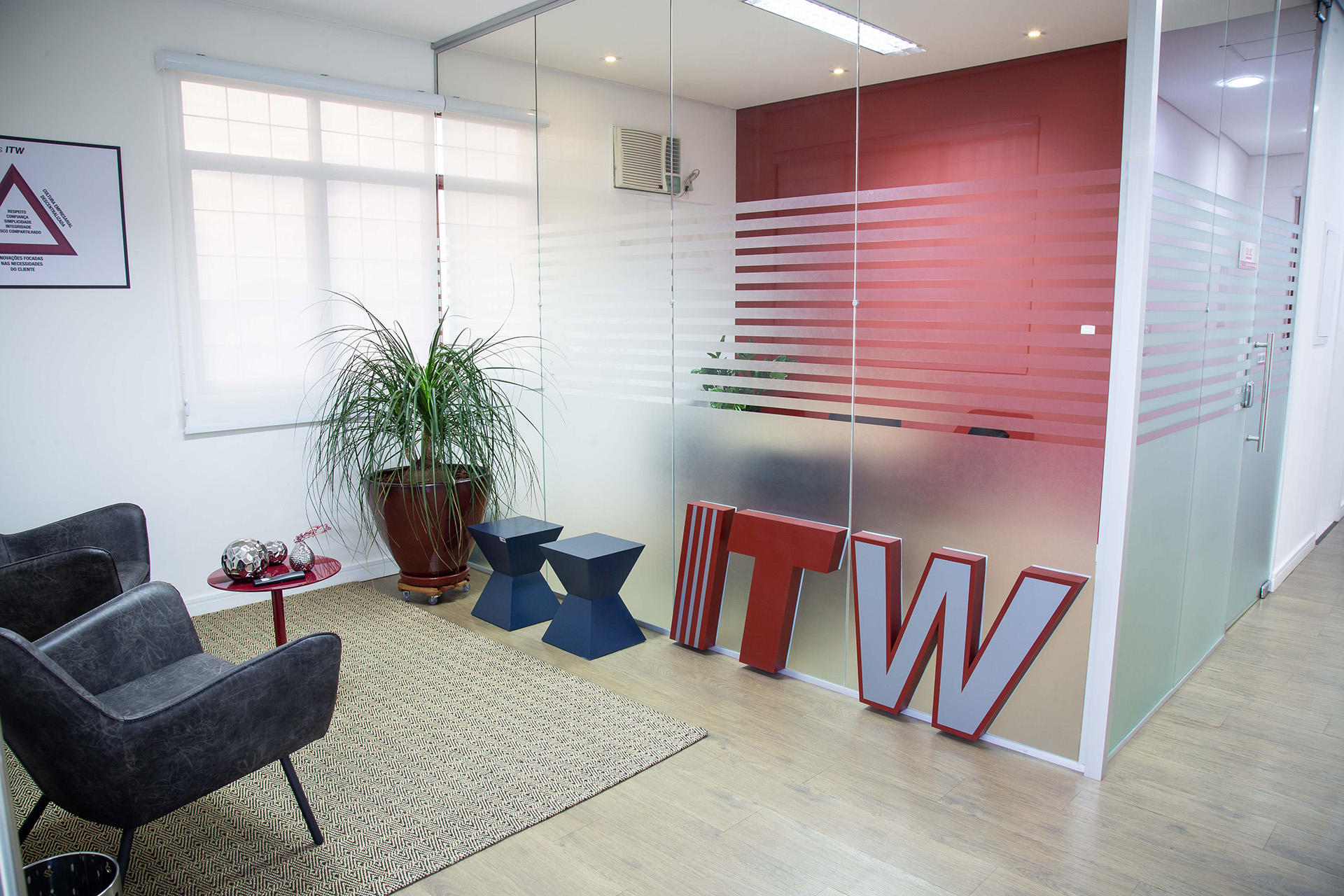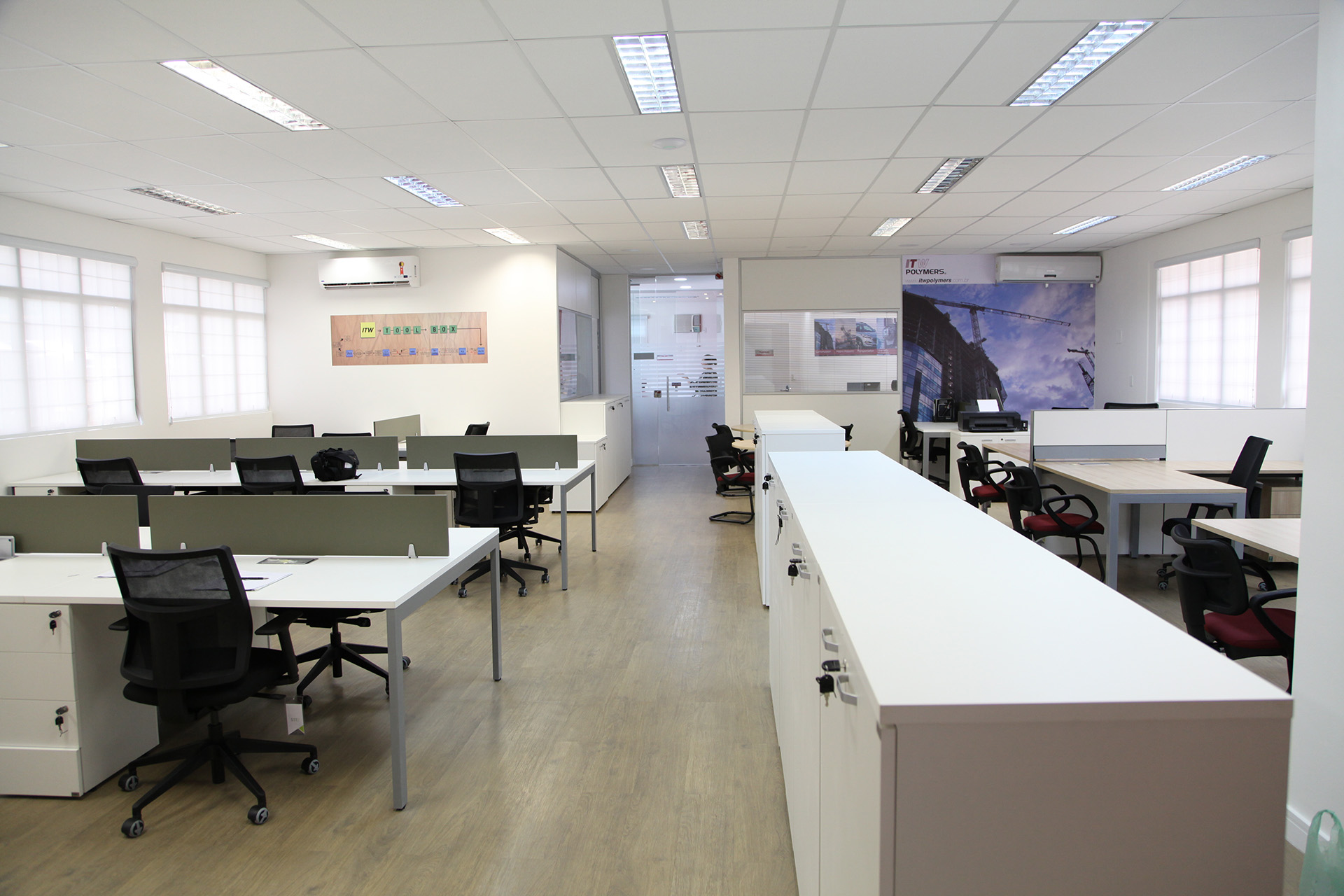 Entre 2017 e 2018, desenvolvemos o projeto arquitetônico completo e realizamos a gestão da obra de reforma do escritório da ITW Polymers Brasil, localizado em Valinhos/SP.
